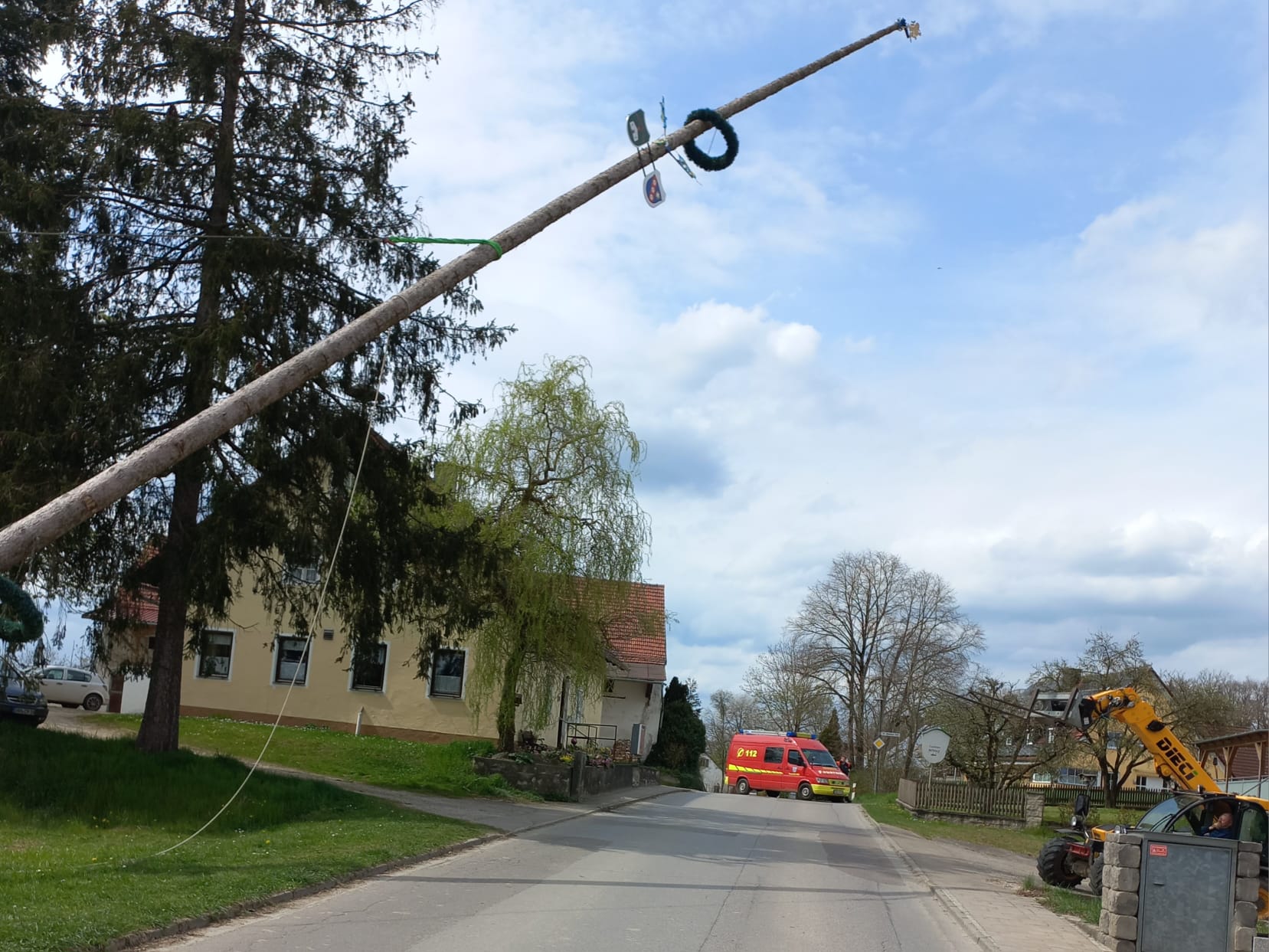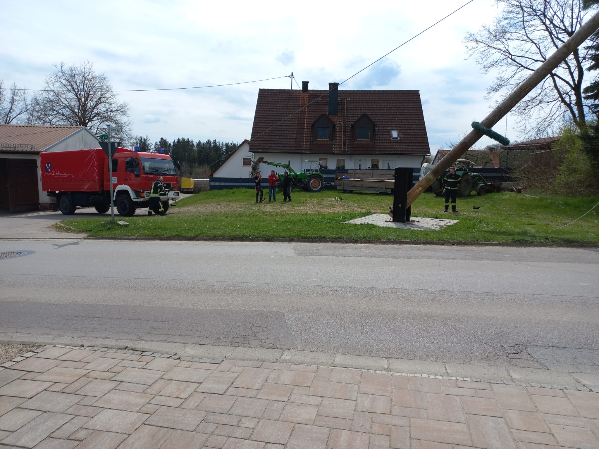 Die Feuerwehr Höfa unterstützte beim Umlegen des Maibaumes in Miegersbach.